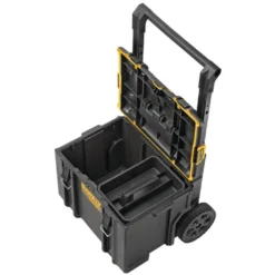 DEWALT has a well-earned reputation for designing and manufacturing many of the world’s most reliable and best-performing professional-grade power tools. And every product is forged with DEWALT ‘s unwavering commitment to producing tools and accessories that can withstand harsh jobsite conditions and meet the unyielding day-to-day demands of professional contractors. And now, DEWALT has applied that same no-nonsense, GUARANTEED TOUGH philosophy to its new line of heavy-duty storage products. The DEWALT TSTAK system is an innovative platform that stacks on top of each other. This deep box features removable compartments and a clear lid. For a limited time get a bonus tool box, organizer and trolley with purchase.