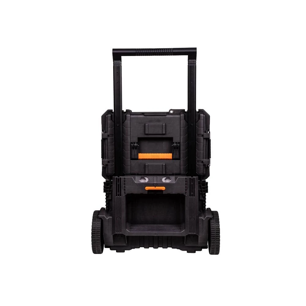 This RIDGID 25 in. Pro Gear Cart 2.0 is made with durable, high-impact resin for long-lasting performance. It’s equipped with heavy-duty metal latches and features an integrated water seal to protect against water and dust intrusion. All-terrain wheels provide easy mobility to different work sites. This tool box cart works with the RIDGID Pro Tool Storage System for a complete, professional look. * The Rolling Tool Cart does not include the wall mounting brackets *